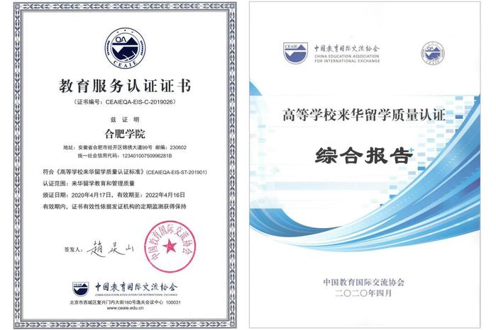 2020年4月17日,我校顺利通过了高等学校来华留学质量认证,并获颁“教育服务质量证书”。我校是2019年度高等学校来华留学质量认证的第一批签约院校之一,顺利通过本次认证对我校开展来华留学教育与管理工作有着重要的意义与指导作用。