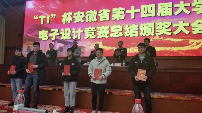 颁奖会于1月4日在国防科技大学电子对抗学院举行,安徽省教育厅高教处副处长朱永国,安徽省电子设计竞赛组委会执行主任张建云、组委会委员鲁昌华教授等出席。合肥学院教务处副处长储忠,大学生创新创业教育中心主任刘沛平,先进制造工程学院实验中心主任高先和,合肥学院电子设计竞赛负责人李翠花,指导老师周泽华、李瑶、冯玉武等老师参加了颁奖会。