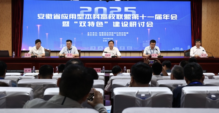 5月29日,安徽省应用型本科高校联盟第十一届年会暨“双特色”建设研讨会召开,我校作为联盟常任主席单位组织召开会议。中共安徽省委教育工委委员、安徽省教育厅副厅长刘业勋,我校党委副书记、校长任永,池州学院党委书记王峰,淮南师范学院校长程刚等出席会议。省教育厅高教处负责同志,联盟及相关高校分管校领导、教务处长、学科负责人等90余人参加会议。