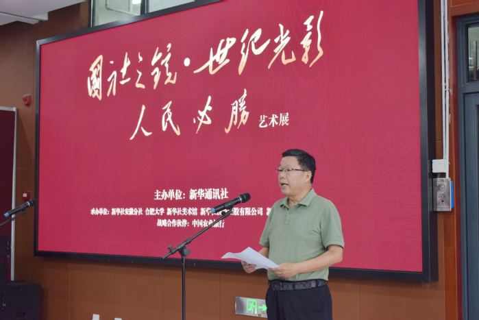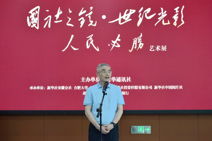 9月18日,“国社之镜・世纪光影之人民必胜”艺术展安徽高校巡展首展在我校隆重开展。新华社安徽分社分党组成员王雷,新华社新闻信息中心安徽中心主任杨善斌,新华网安徽分公司总经理徐金平,新华社安徽分社传播中心负责人、新华网安徽频道主编汤阳,我校党委书记邬平川,党委副书记周飞,党委委员、副校长白义香等出席开展仪式,新华社安徽分社员工代表及我校师生代表参加。