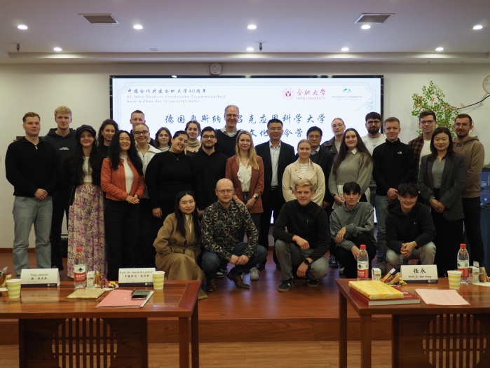 任永在欢迎德国师生时回顾两校在安徽省与下萨克森州友好框架下四十载合作历程,提及上月赴德与施尔曼校长共植友谊红枫之事,并强调:“两校不仅深耕文化交流,更在双学位联合培养、智能制造实验室共建等领域成果丰硕,累计培育数百名国际化应用型人才。”