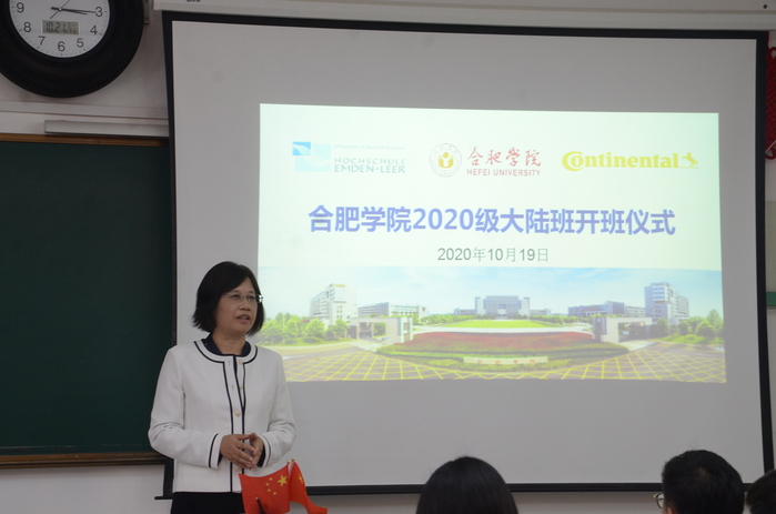 10月19日,合肥学院2020级(第五届)大陆班开班仪式在二区生化楼220教室举办。合肥学院校长吴春梅、副校长陈秀、德国大陆马牌轮胎(中国)有限公司总经理王小骥应邀出席。先进制造工程学院院长吕刚主持仪式。