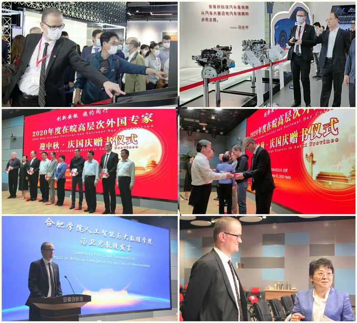 由安徽省委宣传部、安徽省科学技术厅(外国专家局)主办,合肥市科学技术局(外国专家局)承办,安徽创新馆协办的“2020年度在皖高层次外国专家迎中秋庆国庆活动”于9月22日下午在安徽创新馆举办。我校人工智能与大数据学院教授、应用优化研究所所长汤卫思博士(Prof. Dr. Thomas Weise)受邀出席,与来自美国、英国等11个国家的30多名在皖工作高层次外国专家一起参观了安徽创新馆,了解安徽省科技创新和新兴产业发展的魅力。