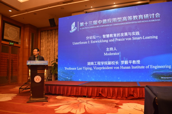 第一分论坛主题为智慧教育的发展与实践,由湖南工程学院副校长罗毅平教授担任主持人。北京大学教授陈洪捷,萨克森职业学院校长、德累斯顿学院院长安德烈亚斯·汉塞尔教授,合肥学院副校长陈秀,奥斯纳布吕克应用科学大学教授亨德里克·拉克勒进行专题报告。