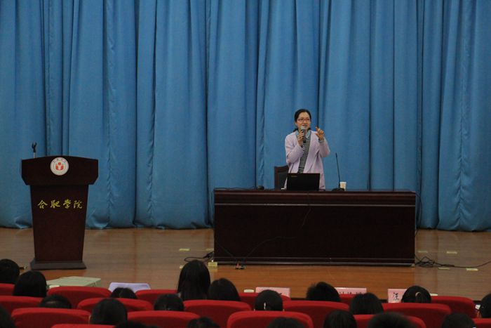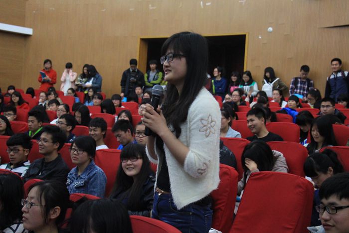 开班典礼结束后,进行了第一次授课。来自新安晚报资深记者钟虹结合自身的经验,与与会的同学分享了自己“累并幸福着”的记者生涯中的点滴故事。“如果让你用五个关键词来表述记者的工作,你会想到哪些词?”一开场,钟虹便抛出这个问题与同学们进行互动。“苦、承担、正义、勇敢……”互动中同学们积极发言,发散的思维调动了现场的气氛。而后,钟虹从“自由、跨界、突破、压力与荣光”五个方面分享了自己的感受。从“深夜暴雨街头采访”到“合肥新一轮老旧小区改造”,从“随时待命,倚马可待”到“换新角度思考问题”一个个动人的故事引发了现场同学对记者这一职业的期待。然而,记者并非如表面看到的那样光鲜亮丽,分享中,钟虹也讲述了自己与同事遇到的各种压力与危险。一件件鲜活的事例暗藏着记者这一职业不为人知的辛苦与压力。虽然有着种种危险和困难,但记者的一篇报道能解救被囚少女,能救助身患绝症的病人,能给受难者带来阳光和雨露,她深深地感慨道:“心中始终要保持这份荣光,因为这是对自己的尊重,也是对这份职业的敬意。”此次授课在一段饶有趣味的视频中结束,视频中展示了新安晚报记者们的日常生活,有趣的视频使现场气氛达到高潮。