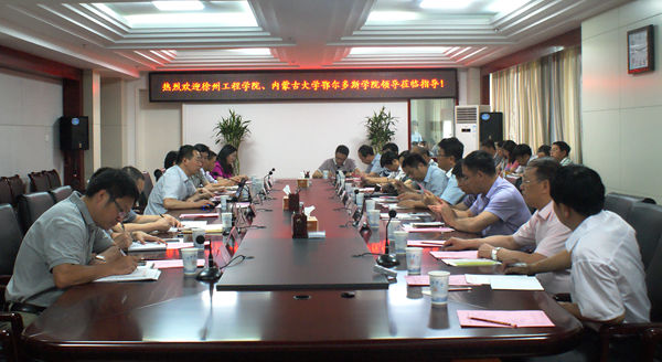 7月8日,徐州工程学院校长张新科、内蒙古大学鄂尔多斯应用技术学院党委书记秦闻苹分别率团到我校调研交流。校长张文兵在行政楼九楼东会议室接待了两所兄弟高校的来宾,党政办、宣传部、外事处、人事处以及相关系负责人参加交流。