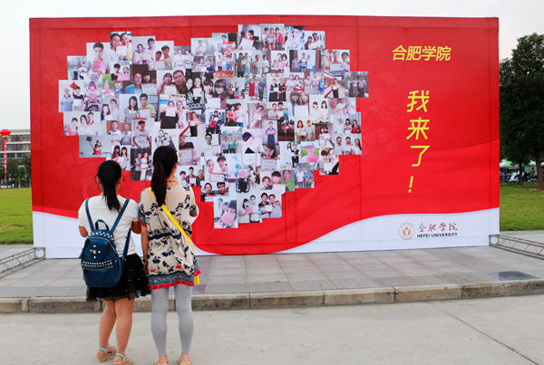 我与录取通知书合影”、万人头像构成的2015照片墙迎新照片板,一个又一个的创意,让合肥学院2015级新生们的报到日充满惊喜