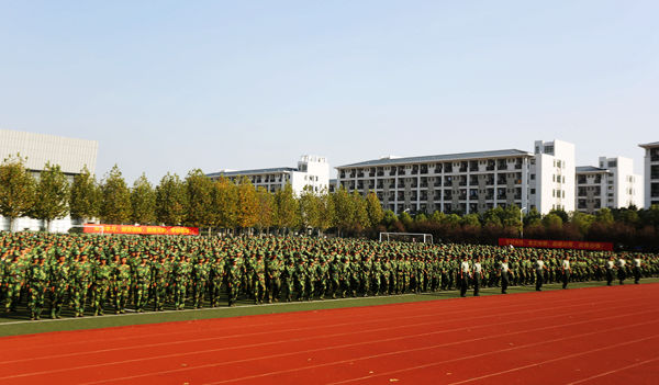 9月28日,我校2015级新生开学典礼暨军训汇报表演于二区体育场正式开幕。中国人民陆军军官学院大校姚立权、我校领导蔡敬民、张文兵、丁明、洪家友、陈秀、刘建中及各院系领导出席本次汇演。