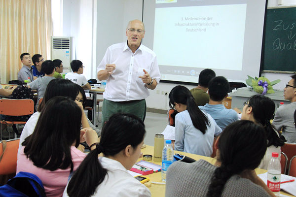 9月6日至17日,我校中德物流专业客座教授,德国国家交通安全协会主席,德国各州交通部长联席会议副主席,前联邦交通、建筑与住房部部长库尔特·博德维希教授管理系中德合作物流专业讲授专业课程,授课内容为交通基础设施和物流课程