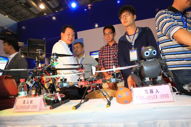 10月19日,合肥学院计科系和大学生创新创业教育中心创业园在安徽国际会展中心参加“2015年全国双创活动周”合肥分会场会展。我校在本次会展上展示了计科系卓越IT工程师俱乐部达尔文机器人和创业园外星人无人机工作室的无人飞行器。