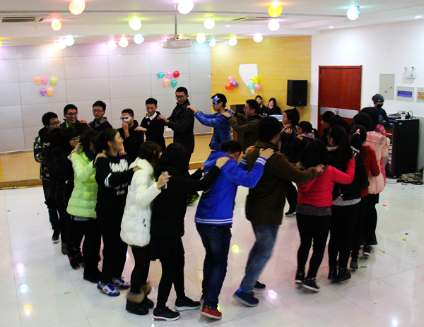 伴随着渐暗的天色,参加活动的同学们陆续到达,挑选自己喜爱的面具。随后,舞会正式开始。本次舞会共分为表演、寻伴共舞、魔术、游戏和抽奖五个环节。其中,在寻伴共舞环节中,舞者先跟随视频现场学习华尔兹,之后同舞伴共舞。戴着面具的同学们毫不羞涩,纷纷展现自己,伴着唯美的音乐同舞伴一起跳起优雅的华尔兹。在“正话反说”游戏中,参赛者将主持人说出的一个词语反着说出,如果说错或反应时间过慢,即被淘汰。现场同学积极参与,台下不时爆发出一阵阵大笑声与欢呼声。此外,还有“夫妻双双把家还”等游戏与抽奖环节赢得在场同学们的好评。最后,伴随着“left,left,right,right,go,go,go”的欢快音乐声,在场观众围成圆圈,一起跳可爱的兔子舞。舞会在一片掌声中圆满结束。