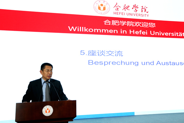 他表示,合肥作为内陆开放的新高地,中德智慧产业园的建设不仅能够为“大湖名城、创新高地”添彩,也必将成为中德合作新的典范。高等教育是经济发展的重要引擎。作为一所有着长期对德合作历史的应用型大学,合肥学院一定能够在中德智慧产业园的建设发展中大有作为。我们将发挥高校在人才、技术以及平台的优势,积极参与中德智慧产业园的建设,为合肥市经济社会的发展,为打造中德经贸合作的升级版和新的典范,作出应有的贡献。