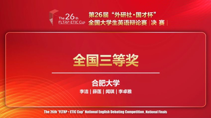6月1日至2日,第26届“外研社•国才杯”全国大学生英语辩论赛全国决赛举办,我校学子闻琪、李卓雅表现优异,获全国决赛三等奖。