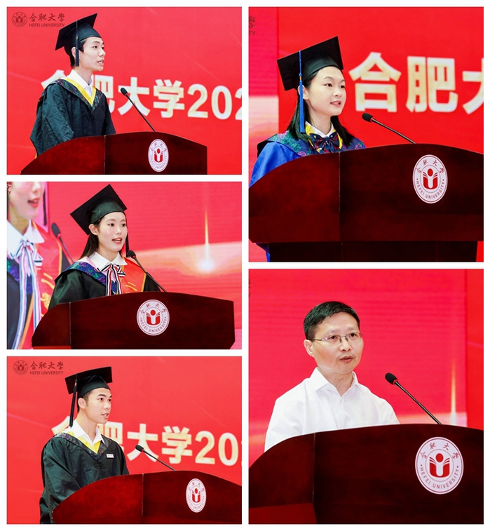 副校长、校学位评定委员会副主席陈秀宣读学位授予文件。校党委书记王其东、陈秀分别为本科毕业生代表、研究生毕业生代表、优秀留学生毕业生代表授学位、拨流苏。