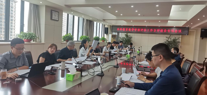 储忠汇报了学校自评报告的整体撰写情况。与会人员在前期审阅自评报告讨论稿的基础上,针对报告章节内容进行深入交流,并提出了修改意见和建议。